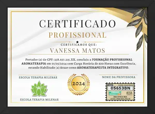 Sim! O nosso certificado é reconhecido pela ABRATH (Associação Brasileira dos Terapeutas Holísticos) permitindo que você atue legalmente na Profissão, realizando atendimentos e indicando os Óleos Essencias. O Aluno certificado poderá retirar sua carteira Profissional (CRT – Conselho Regional de Terapia).
